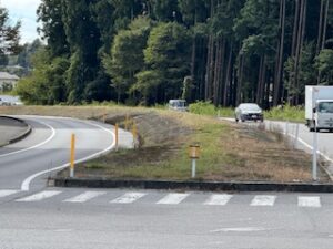 ②主道路は大きくカーブし、その先に横断歩道あり ~横断歩道のラインは消えている