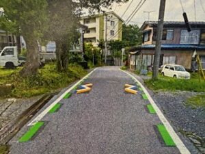 6月3日、県道の拡幅が困難な為「歩行者ドット」「イメージハンプ」の設置を提案