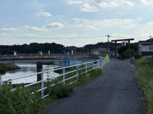 ①ニ杉橋の北西側堤防道路のみ、ガードパイプが設置されている